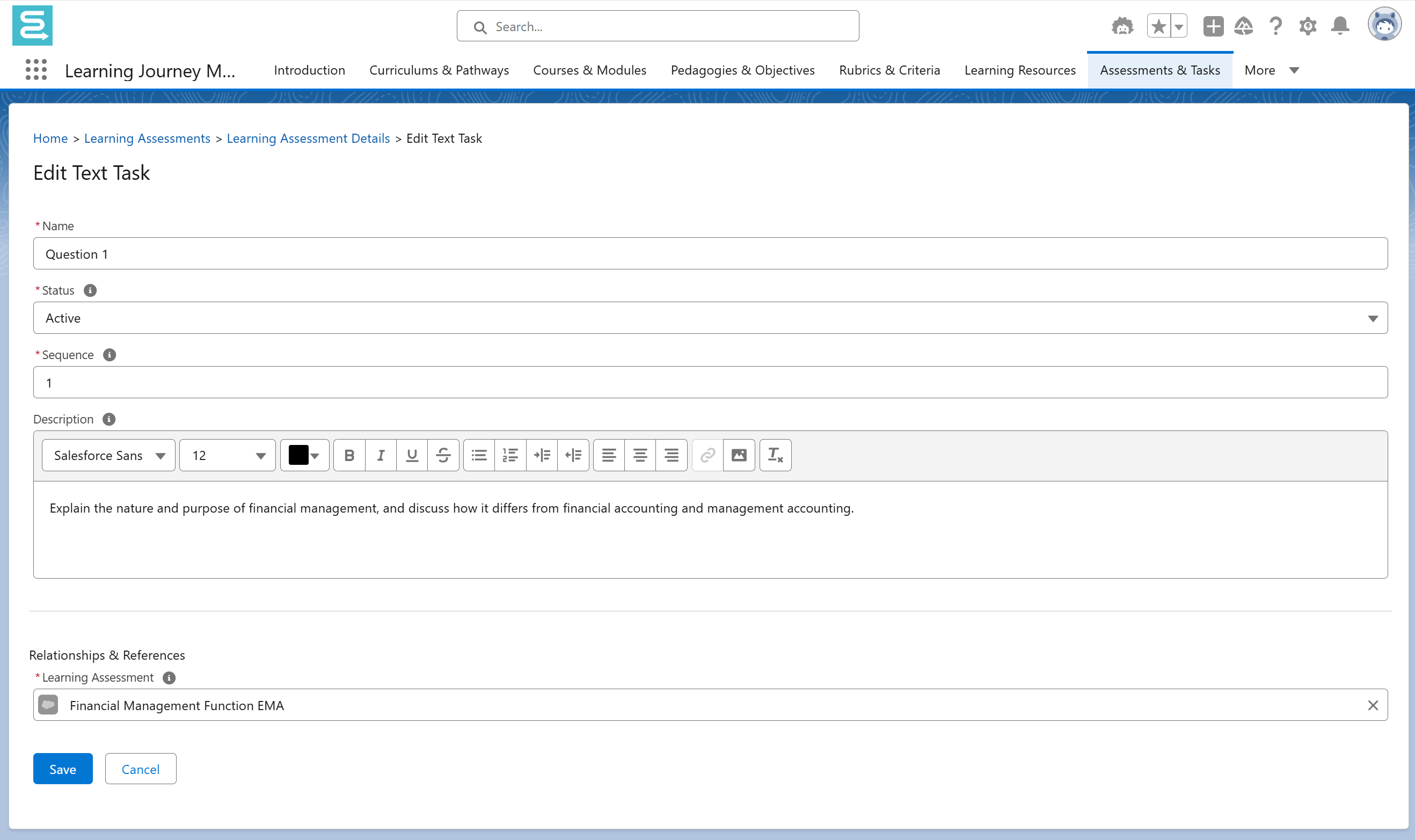 - Learning Assessment: Associate a learning assessment with the text task.