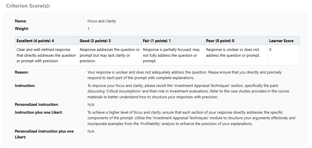 Shows criterion score information, additional details are shown after submission.