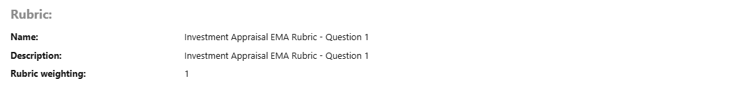 Shows rubric name, description and weighting.